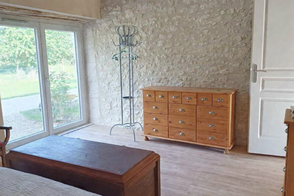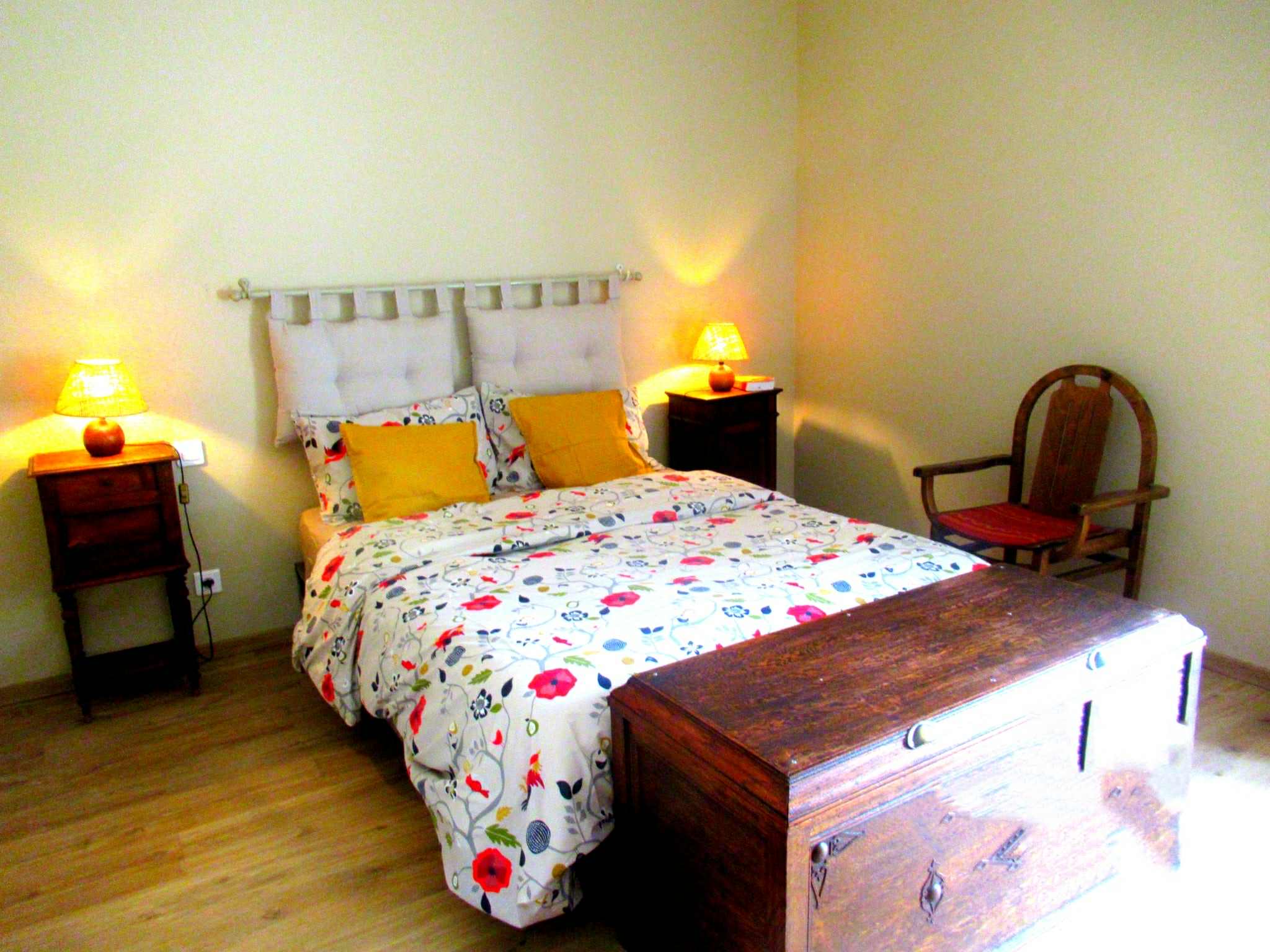 La Chambre verte (lit en 140, armoire et commode) avec une sortie directe sur la terrasse couverte